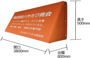 間口3800mm×高さ500mm×出幅800mm